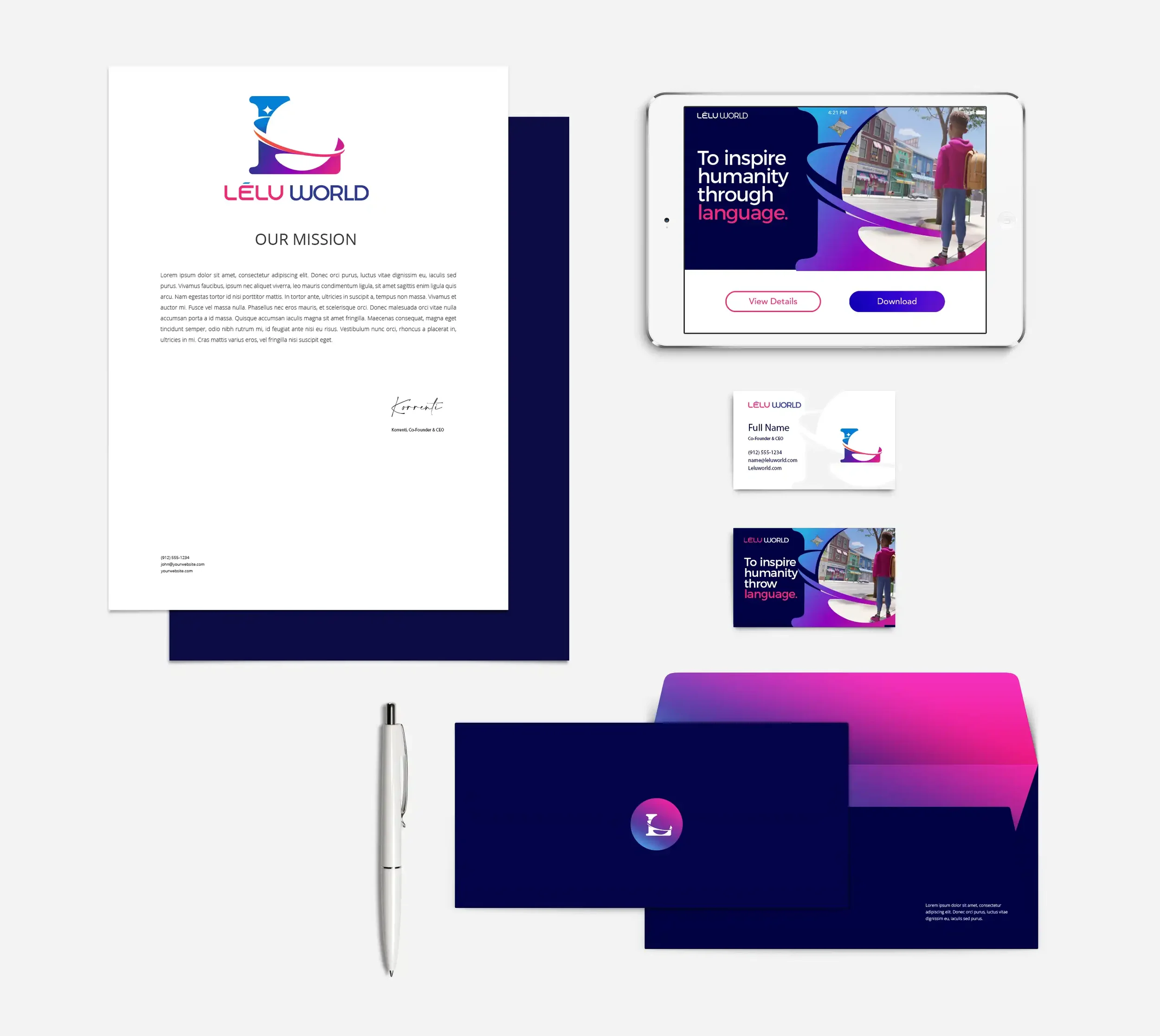 The main challenge was creating cohesive brand identity that communicates language learning platform with a virtual world and cryptocurrency marketplace.